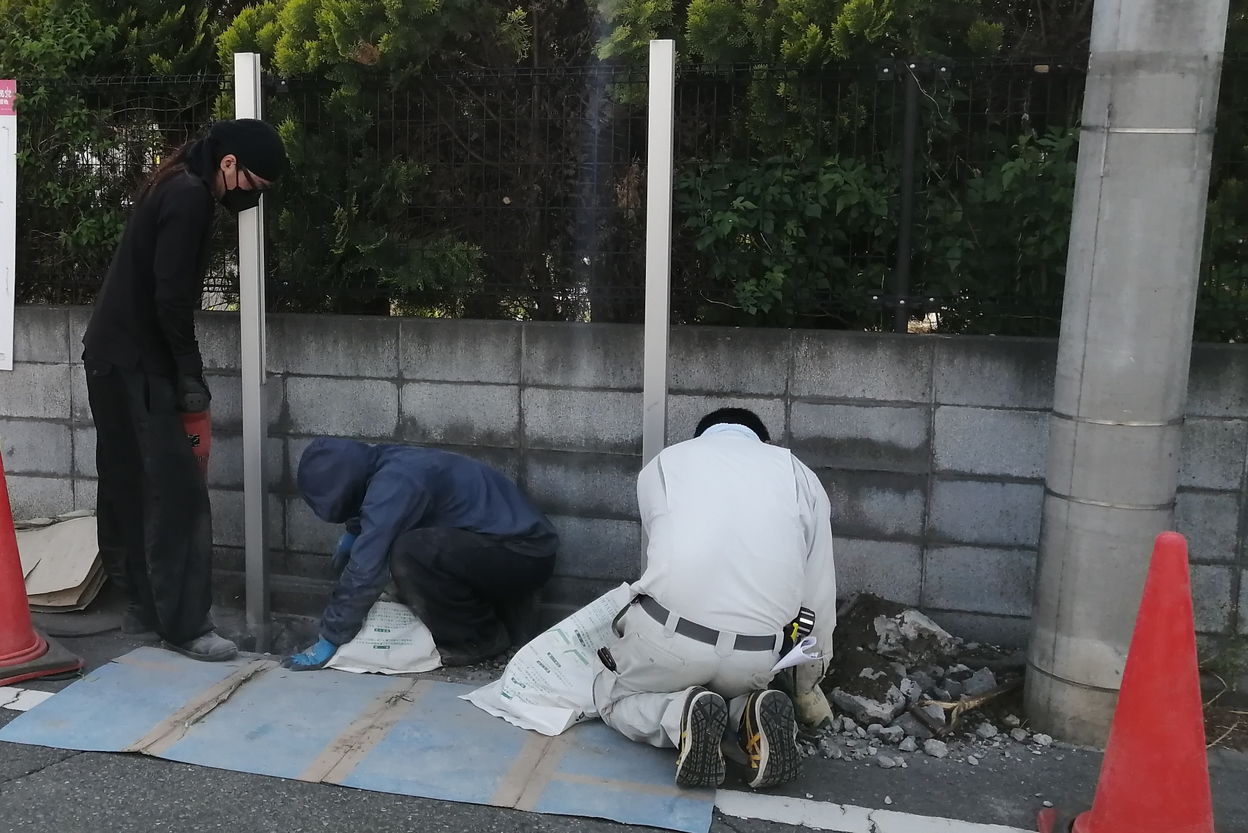 マス目に沿ってコンクリートを破砕、掘削。破砕したあとは地盤沈下しないようにしっかりと埋戻し転圧および補修。