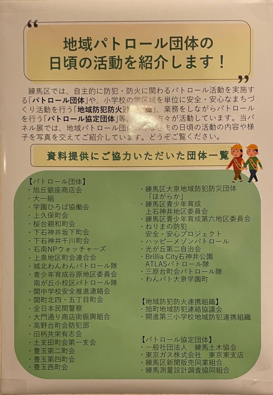 ◆防犯部◆ 「ねりまパトロールフェア 地域パトロール団体活動紹介パネル展」2026.1.24(土)