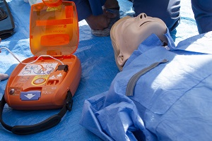 心肺蘇生法およびAED (自動体外式除細動器)操作訓練。