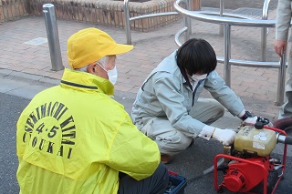 炊き出し用のバーナーを安全に操作する訓練。